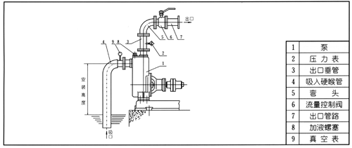 A.吸人口的安裝高度盡量不超過5米,在條件許可時,吸人口的安裝高度應盡可能地低于油庫低儲油面,并盡量縮短吸人管的長度,少裝彎頭,這樣有利于縮短自吸時間,提高掃艙功能。